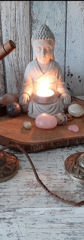 Ich setze oft Klangschalen, Edelsteine, ätherische Öle und meine Hände ein, um Wohlfühlen erfahrbar zu machen