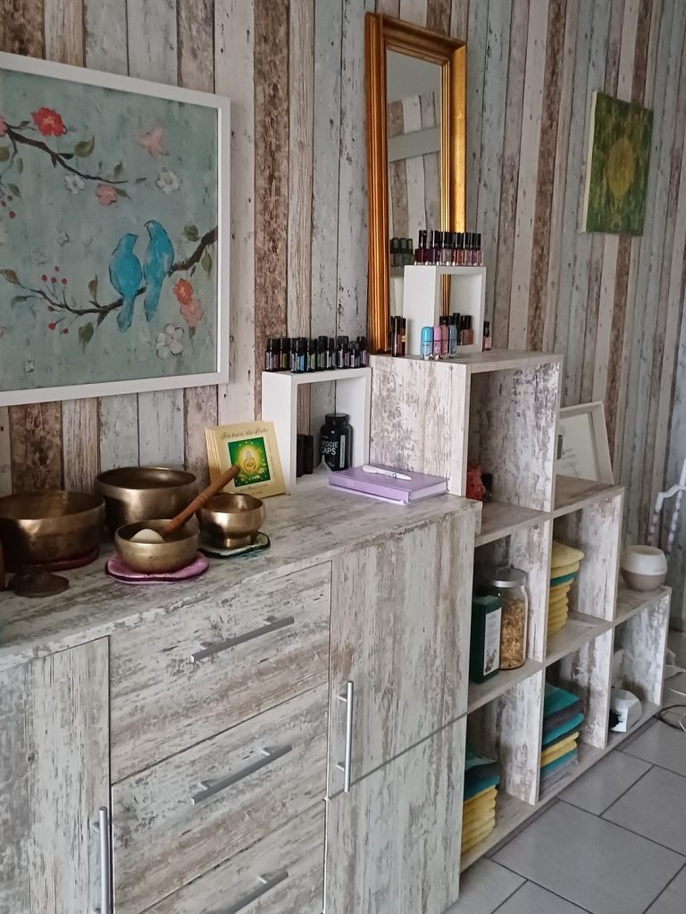 Ich setze oft Klangschalen, Edelsteine, ätherische Öle und meine Hände ein, um Wohlfühlen erfahrbar zu machen